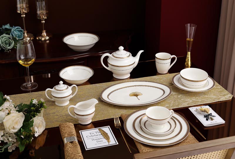 New Bone China Gold Garland Decal Luxury with Relievo Decoration Dinnerware Set